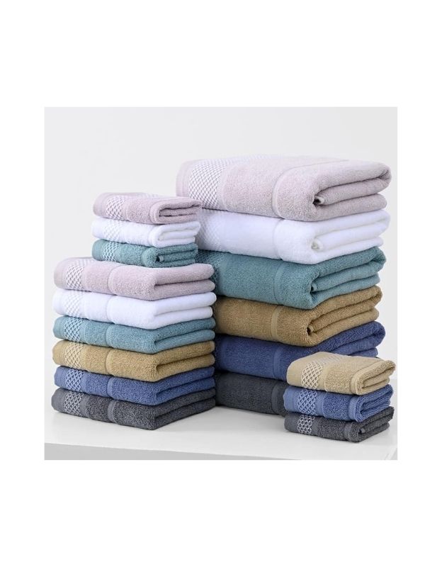 Another approach to show off your particular style is to mix and match different colours, patterns, and textures of towels. You may make your bathroom look elegant and appealing by combining different towels to the same colour scheme or theme. For example, you may combine towels with solid colours and towels with designs. You might also combine different textures, such as waffle weave and terry fabric. Experiment with different combinations until you discover one that both matches your style and looks excellent.